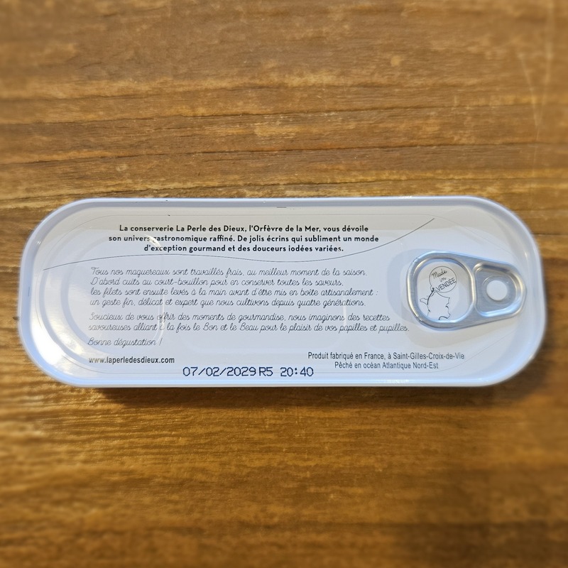 Makrelenfilets, gekocht in Court-Bouillon zu 56 % (frische Makrelenfilets, Salz, Gewürze und Kräuter), Wasser, Rapsöl, Dijon-Senf (Wasser, Senfsamen, Spiritusessig, Salz), Honig 5,6 %, Weißweinessig*, Spiritusessig*, Weißwein*, Weißwein*, Salz, Reismehl, Thymian (0,4%), Salz, Knoblauch, Maniokstärke, Pfeffer, Eindicker: Xanthangummi und Guargummi, Gewürze.